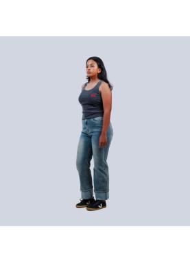 Débardeur gris foncé en tissu côtelé, près du corps et doux au toucher. Parfait pour un style sobre, confortable et facile à associer.